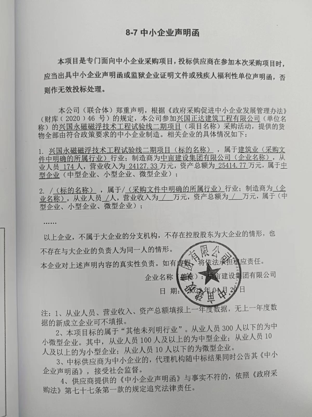 興國(guó)永磁磁浮技術(shù)工程試驗(yàn)線二期項(xiàng)目 | 詳見(jiàn)競(jìng)爭(zhēng)性磋商文件 | 詳見(jiàn)競(jìng)爭(zhēng)性磋商文件 | 在政府采購(gòu)代理機(jī)構(gòu)規(guī)定的時(shí)間內(nèi)和采購(gòu)人簽訂合同,并按采購(gòu)人要求進(jìn)行施工服務(wù)。 | 詳見(jiàn)競(jìng)爭(zhēng)性磋商文件 |